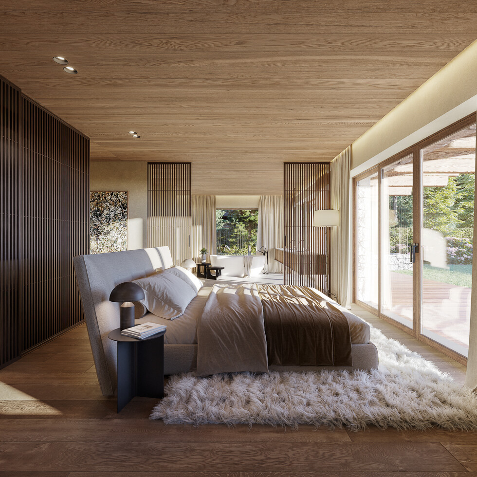 The heart of the chalet is the spacious living, cooking and dining area, which impresses with an elegant, custom-made kitchen and high-quality materials. Floor-to-ceiling windows create a light-flooded ambience and open up a breathtaking view of the Kitzbühel mountains. The property offers a total of five bedrooms and seven bathrooms, guaranteeing privacy and comfort at the highest level.