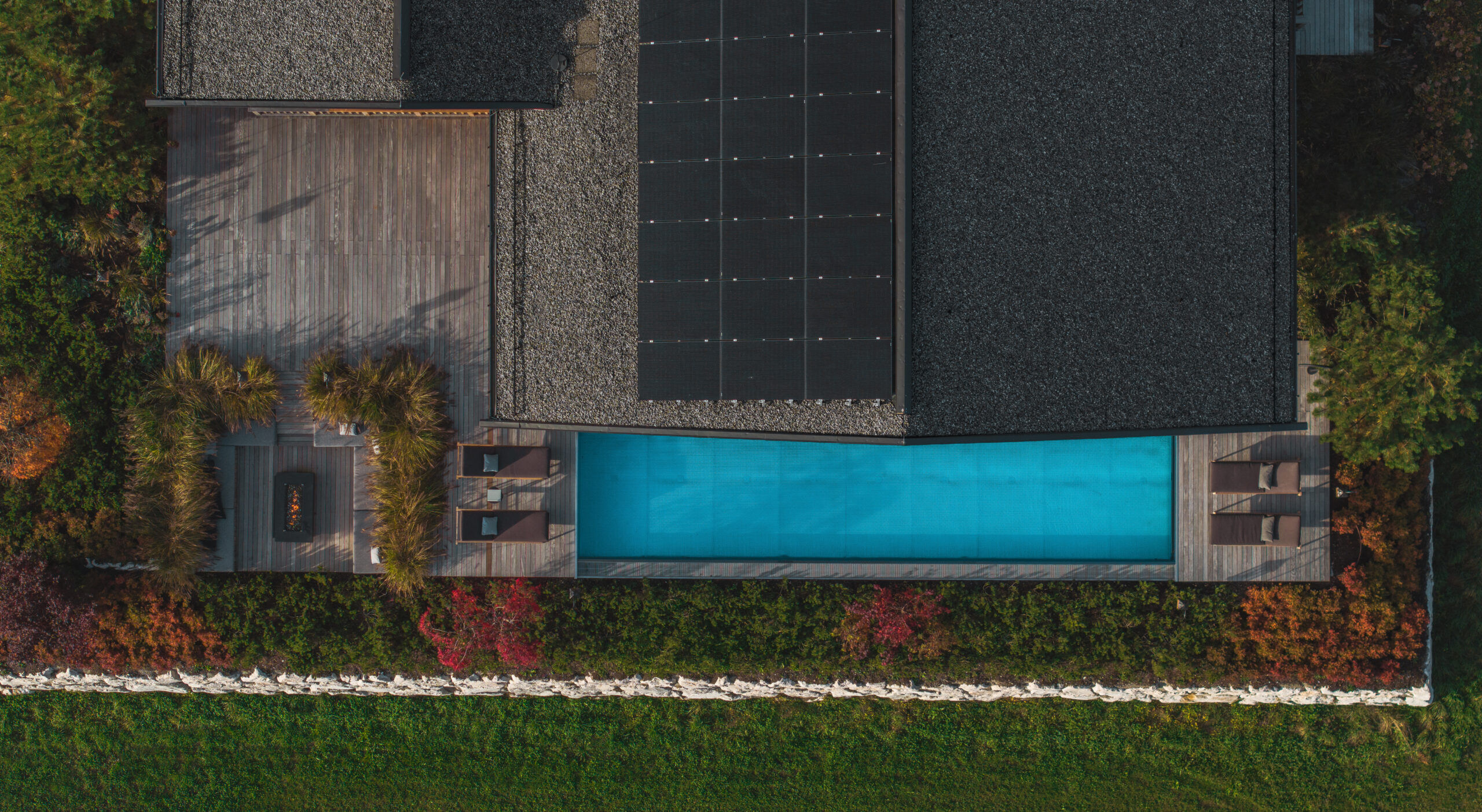 Der Wohn-, Koch- und Essbereich fügt sich harmonisch in das Gesamtkonzept ein und wird durch einen stilvollen Kamin zu einem behaglichen Mittelpunkt für gesellige Stunden. Ergänzt wird dieses luxuriöse Wohngefühl durch eine Kaminlounge am Infinity-Pool – ein Rückzugsort, der zu jeder Jahreszeit eine einzigartige Atmosphäre bietet.